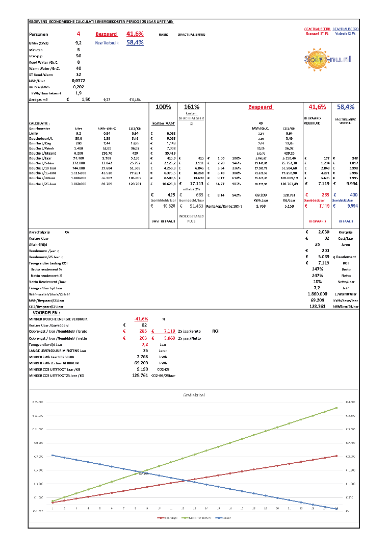 1-)Energiebesparing tussen 35 en 70% op Douchewarmtapwater-energie.