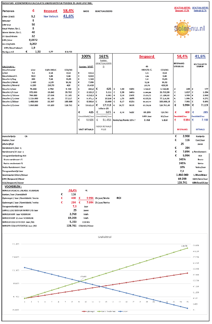1-)Energiebesparing tussen 35 en 70% op Douchewarmtapwater-energie.