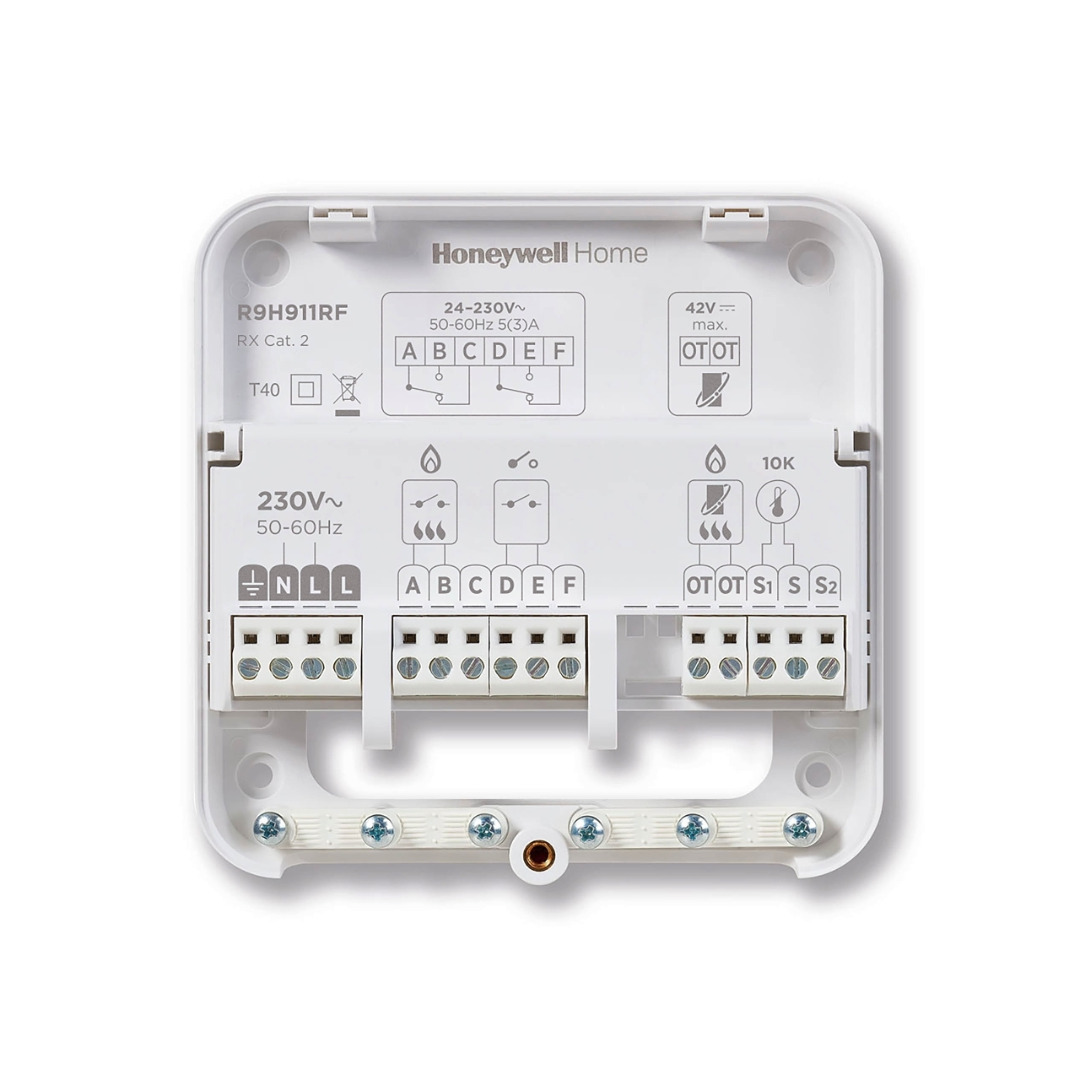 Honeywell Home R9H is een stuurodule met 2x Aan/Uit uitgang, 1x OpenTherm uitgang en 1x warmwatersensor ingang. Het heeft een modern ergonomisch ontwerp met montagemogelijkheden voor rechtstreeks op de muur of op een inbouwdoos. De Stuurmodule kan worden gebruikt Aan/uit-ketels, Zonekleppen, Modulerende OpenTherm-ketels, Warmtepompen of Stadsverwarming te schakelen als onderdeel van het evohome-systeem.